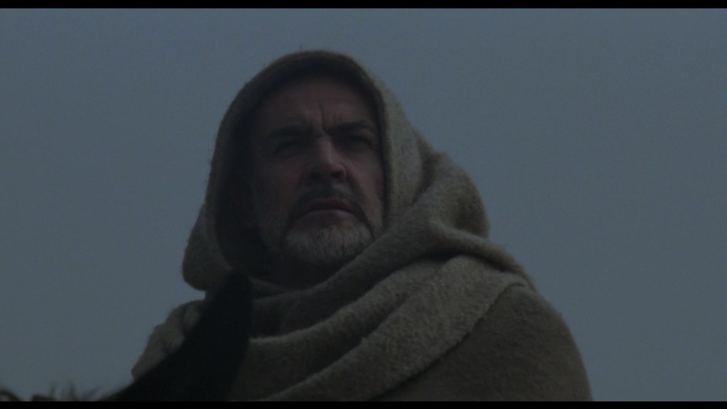 It was Bernd Eichinger who first suggested Sean Connery as William of Baskerville. He was not initially a popular choice: Annaud could not see the Scottish actor in the role, and after a long fallow period he was considered to be something of a ‘has-been’ with mass audiences. His latest film was Never Say Never Again (1983), which returned him to the role of James Bond that had originally made him famous; now he appeared type-cast by it. His films of recent years were littered with commercial flops, including disaster picture Meteor (1979), science fiction film Outland (1981), drama Five Days One Summer (1982), and the satirical comedy Wrong is Right (1982). By coincidence, Andrew Birkin had worked with Connery before, having served as second-unit director on the James Bond sequel Diamonds Are Forever (1971).