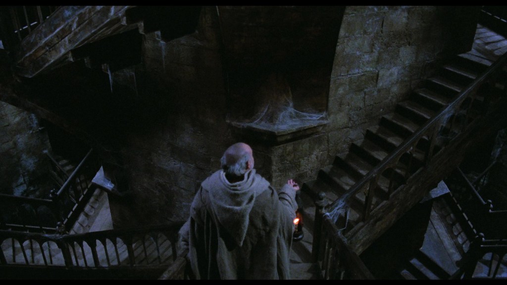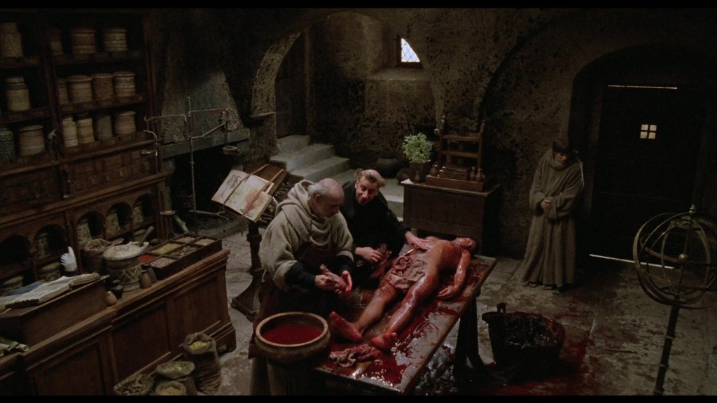 Annaud is an atheist: an odd philosophy to have when one glances over his filmmaking career, which include not just The Name of the Rose but faith-dominant films like Seven Years in Tibet (1997) and Notre-Dame on Fire (2022). ‘I come from a completely atheist, totally secular, and republican family,’ the director once noted. ‘The hereafter was an abstract notion in our house, but I remember that around the age of 10-12, I felt something was missing… I made up for it by developing a great interest in medieval architecture. I spent my pocket money on records of sacred music, Gregorian canticles, Tibetan chants, Sahelian songs, Bach oratorios, and Frescobaldi toccatas. In summer, at my request, rather than go to the beach, we toured Breton church closes or the Romanesque basilicas in Auvergne. I can’t recite a single prayer, but I have deep respect for other people’s forms of worship and faith.’[4]