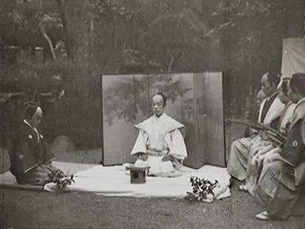 Chusingura begins with a brief prologue scene of samurai outside of some castle gates. Its first full scene – and the longest in this version at 10 minutes – broadly replicates the fourth of eleven acts from the play. Lord Asano, having struck Lord Kira in a temper, is questioned on his motives before the Shogun arrives to pass sentence for his crime. His is to commit seppuku – ritual suicide – and his lands and assets are to be confiscated. His retainers are to be disbanded, and must live as masterless ronin.