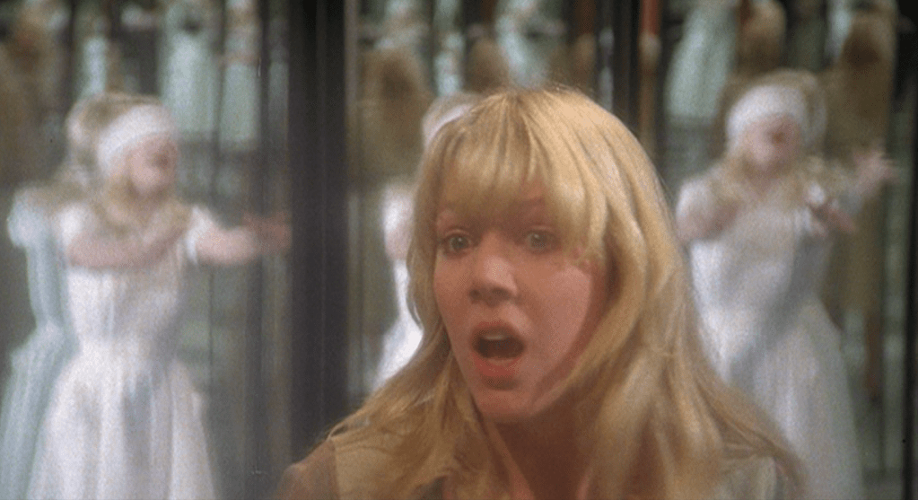 Undertaking reshoots were possible because the sets of the film had been dismantled at Pinewood, but not disposed of. An actor’s strike delayed the reshoots until later in 1980. While this was not a major issue in regards to the adult cast, for young Kyle Richards it was a different matter. Lynn-Holly Johnson said: ‘When we reshot the Watcher’s ending at Pinewood Studios in England, I was already there shooting 007’s For Your Eyes Only. One funny thing I do remember was that when we went to reshoot, Kyle had grown about 6 or 8 inches taller in that year since we had wrapped the film.’[17] The difference in age for both Richards and Johnson is clearly visible in the re-shot climax.
