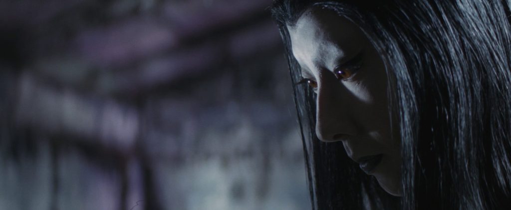 Tanaka presents an evenly-balanced mixture of period drama and supernatural horror here. He was a former assistant to Japanese great Kurosawa Akira, so it is not a surprise to see him bring such a strong handle on setting, culture, and character. One of the elements that demonstrates the strength of his film is that, were one to remove all of the ghostly elements from the narrative, there would still be a well-plotted and intriguing historical drama left behind. The apprentice Yosaku retains his master’s commission to carve a statue of Kannon – a Bodhisattva of mercy and compassion – but in doing so earns the ire of a local aristocrat. That lord forces the temple to turn the commission into a contest between Yosaku and a veteran artist of his own choosing. The same lord also begins to covet Yosaku’s new wife Yuki, unaware of her true demonic nature.